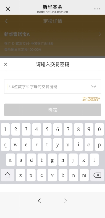 选择好您要操作的“修改”/“暂停”/“终止”后输入您的“交易密码”即完成。
